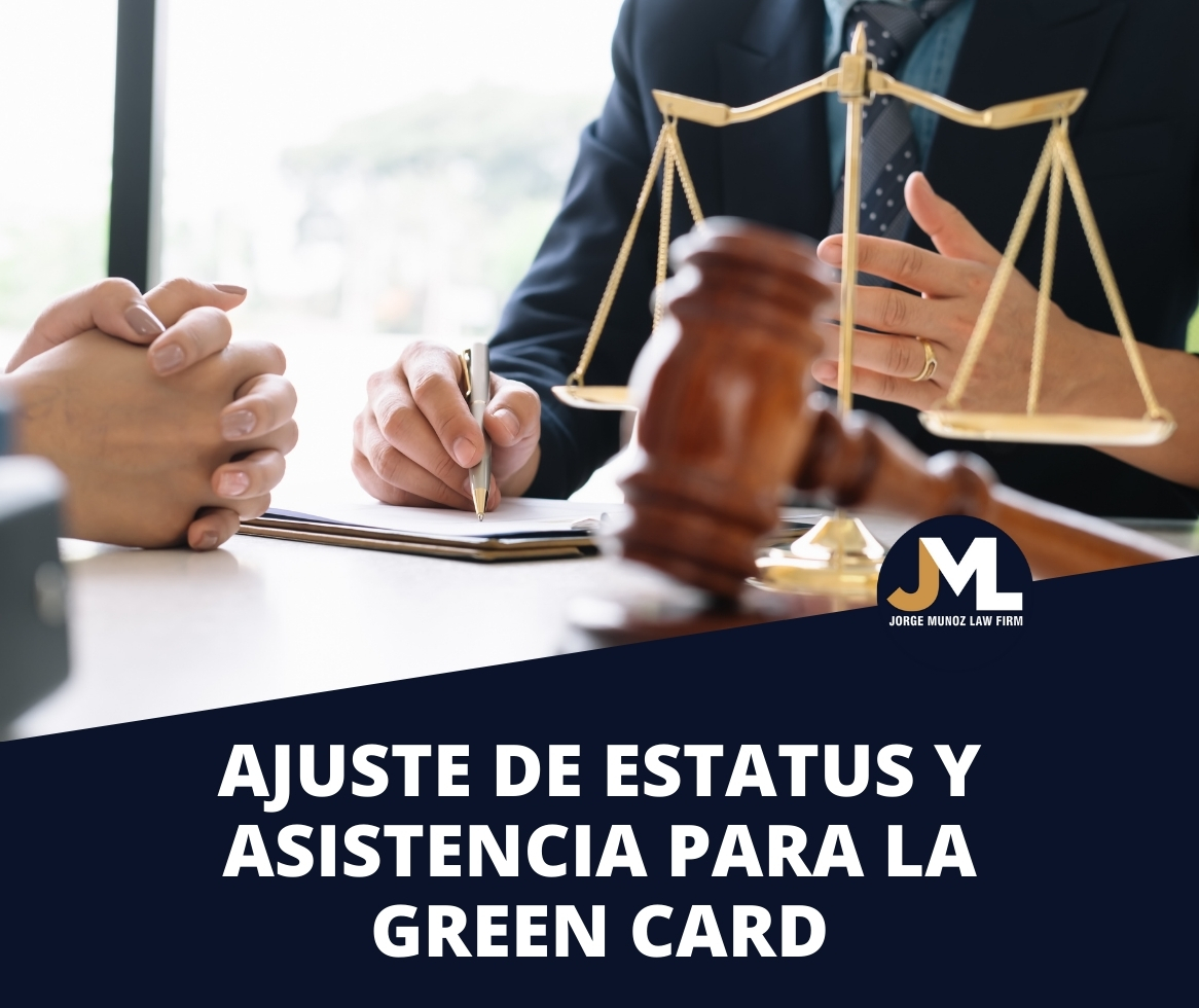 El bufete de abogados Jorge Muñoz ofrece asistencia legal en cada paso del proceso de ajuste de estatus. El ajuste de estatus es el proceso de adquirir una Green Card cuando ya vive en los Estados Unidos con una visa de no inmigrante.